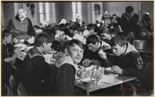 Танцы в училище...Такого в Питере больше нигде не было! Сколько же барышень наплывало! В этот вечер дежурить по раздевалке - просто ужас! (фото Георгия Степанова.) 4-й курс, субботнее увольнение, Стрельна, 1980 год (Фото А. Воронова) Бывший конюшенный корпус, курсантская столовая училища.