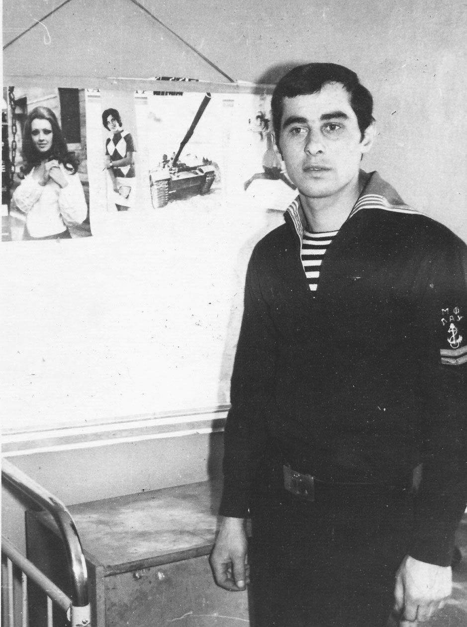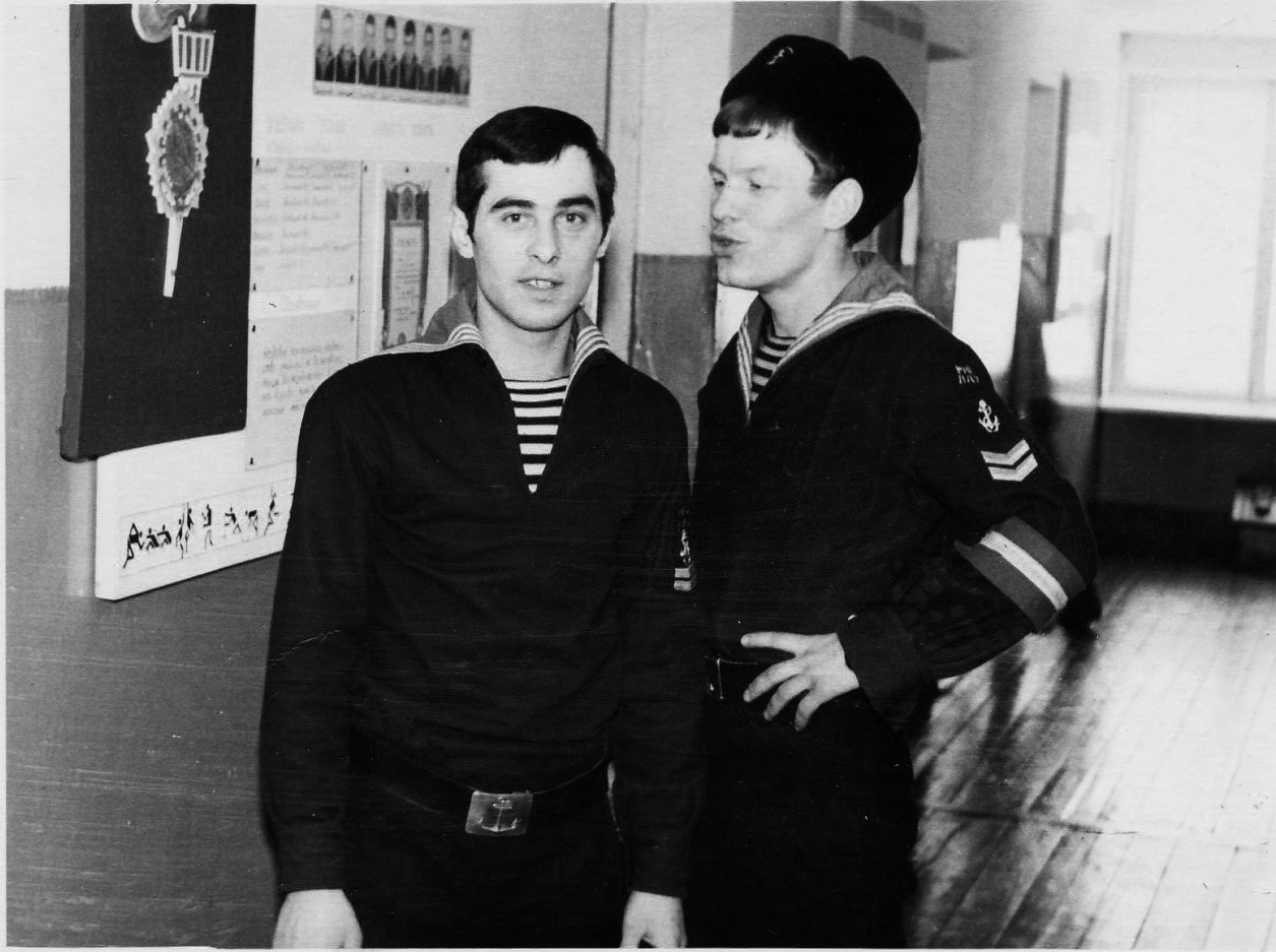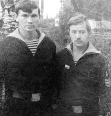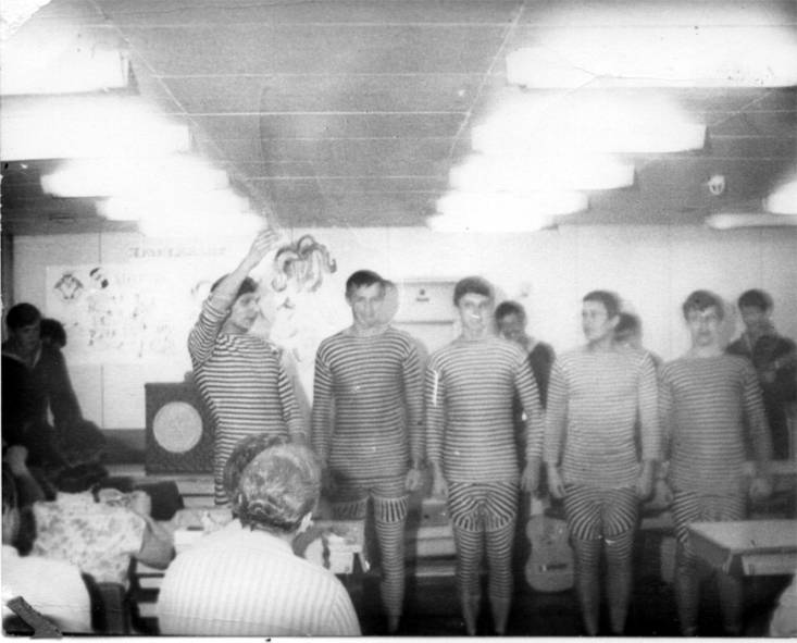 Старшины 5 роты ЭМО Слева-направо Михалев Ю. Федоров А. ; Анохин А., Сенин В. Абрамов Н. ; сидит - Вовненко Н. |