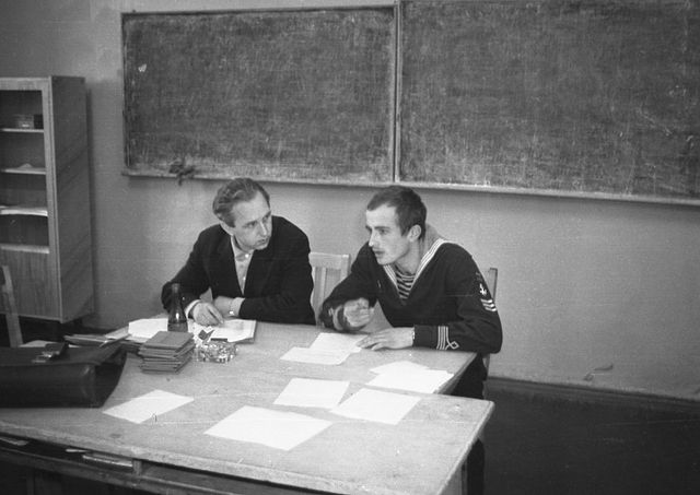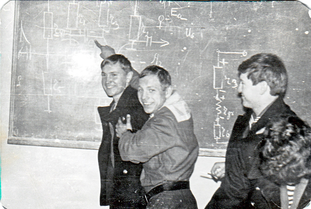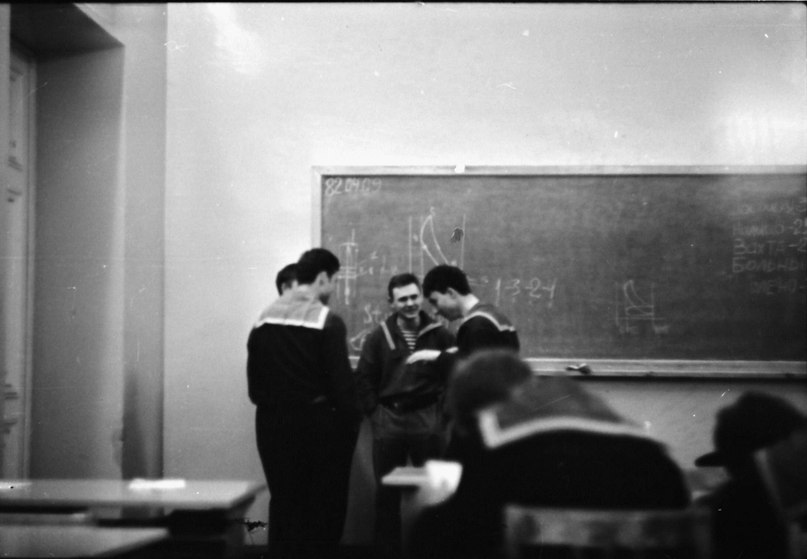 Давид Борисович Ревут, преподаватель радиотехники, наш классный руководитель принимает зачет у 442гр РТО80, фото А.Юдина |
